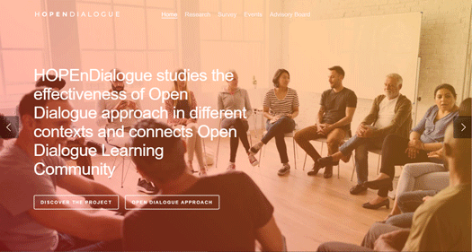 HOPEnDialogue has been designed to connect the Open Dialogue research projects emerging worldwide. In February 2019, the Foundation for Excellence in Mental Health Care awarded a research grant to the Italian National Research Council that allowed HOPEnDialogue to start. HOPEnDialogue has two purposes. First, it investigates the effectiveness of Open Dialogue in different contexts. Second, it aims to connect and support the Open Dialogue Learning Community in centers that adopt Open Dialogue with fidelity.
